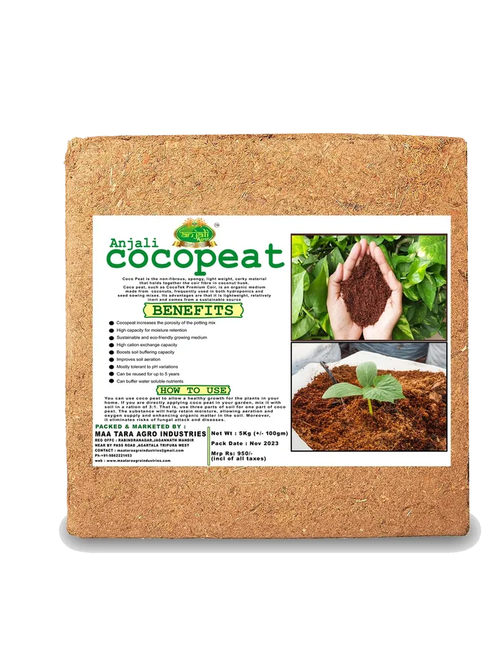 Anjali Cocopeat is a natural, eco-friendly soil conditioner derived from coconut husks, making it an excellent growing medium for plants. It enhances moisture retention, aeration, and root development, making it ideal for gardening, seed germination, hydroponics, and soil improvement.