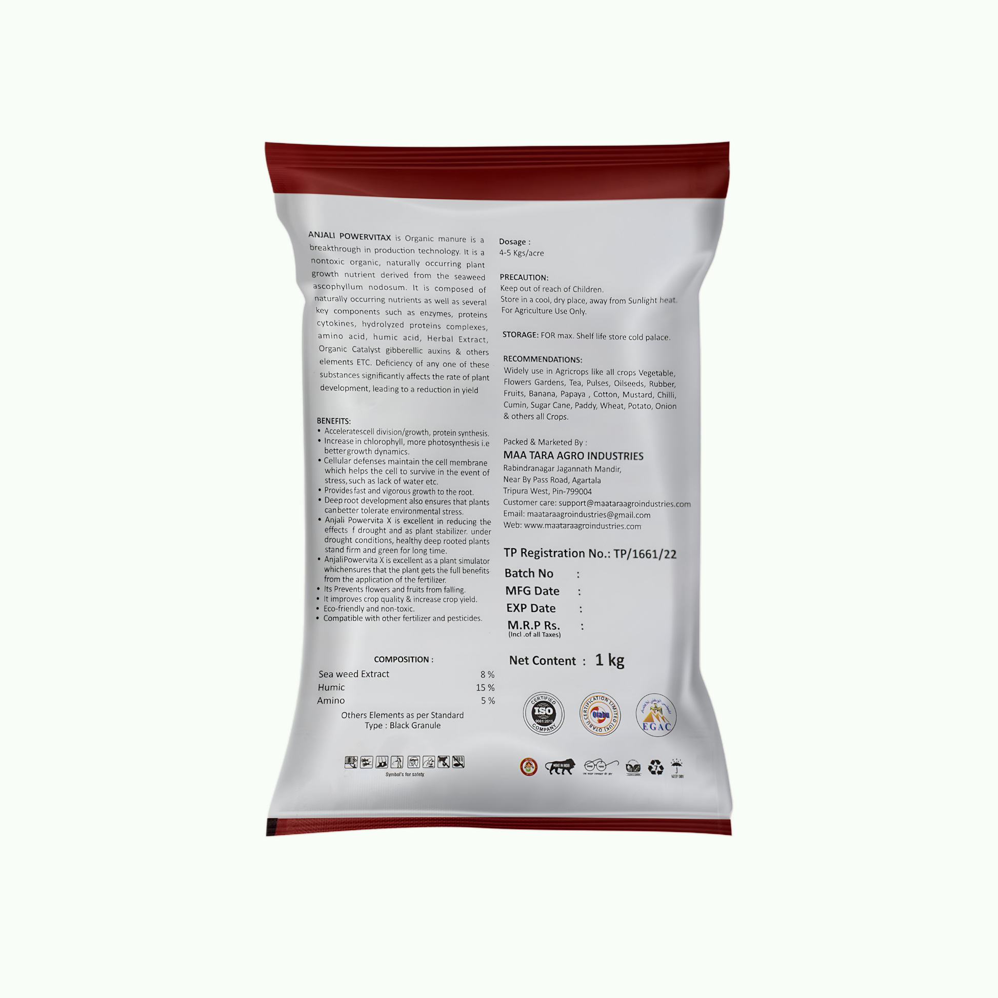 Widely use in Agricrops likes all crops vegetable, flower garden, Tea pulses, oilseeds, Rubber, fruits, Banana, papaya, cotton, Mustard, Chill, Cumin, Suger Cane, Paddy, Wheat, Potato, Onion & other all Crops.